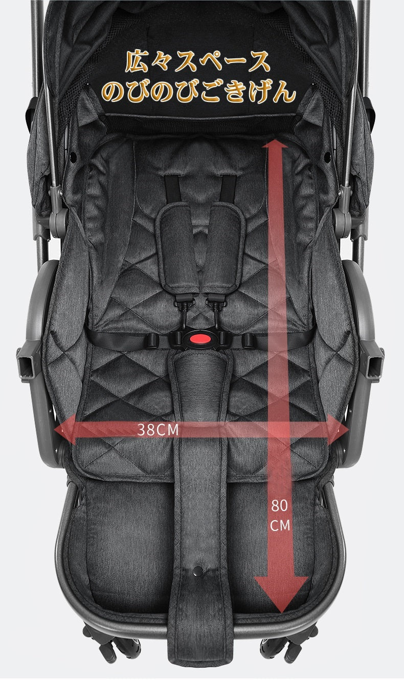1.A型ベビーカーは背もたれをしっかりと倒すことができるので、生後1ヵ月からすぐに使い始めることができます。