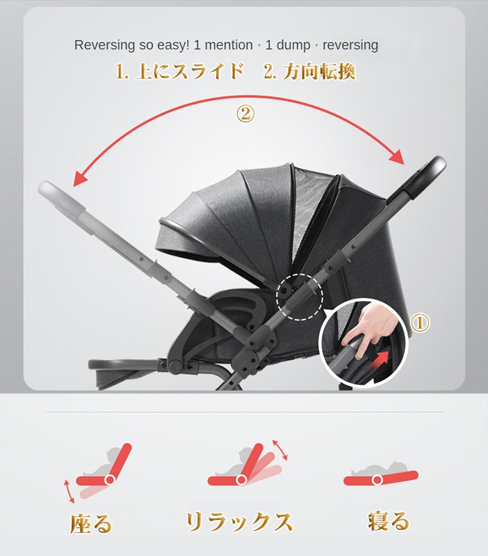 2.A型ベビーカーは、赤ちゃんと向き合った状態にすることができます。対面と背面を切り替えできる「両対面式」の機能を持つことも特徴です。