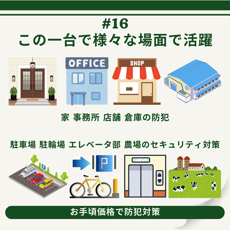 ●動体検知と警告音機能を併用して 警告音を発し 防犯&威嚇効果さらに増強します